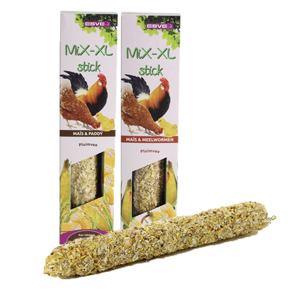 Mais en meelwormen: maïs 19%. graankorrels. plantaardige bijproducten. gemalen oesterschelpen. bakkerijproducten. honing. suikers. gedroogde insecten (meelwormen 0.4%) en mineralen.