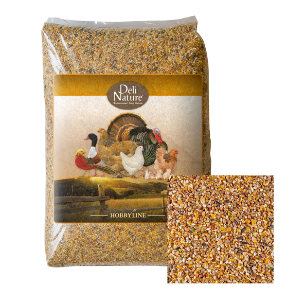 - Hoogwaardige graanmengeling van gebroken granen, ideaal voor krielen, kleine en grote hoenders en diverse sierpluimvee.