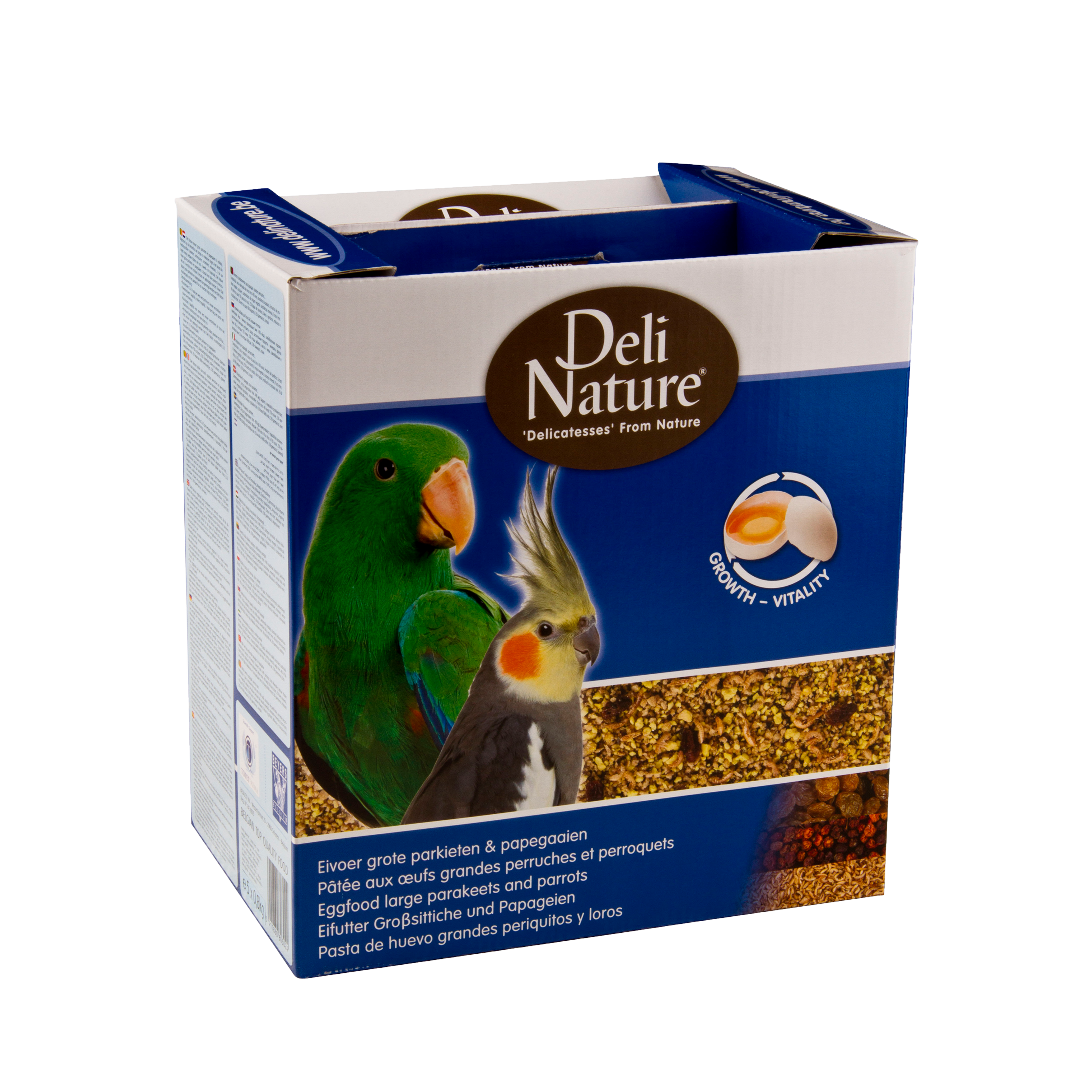 Eivoer Grote Parkieten en Papegaaien Vet van Deli Nature is een kant en klaar eivoer met 100% natuurhoning voor grote parkieten en papegaaien.