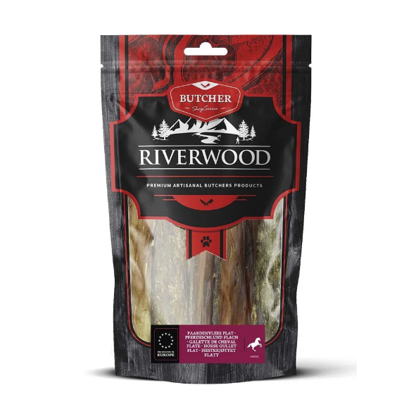 Riverwood Paardenvlees plat zijn natuurlijke snacks van 100% paard. Voor honden is het belangrijk om regelmatig te kluiven. Dit draagt bij aan het reinigen van het gebit en gezond tandvlees. Deze snack is een échte beloning en het kluiven is ook nog een leuke actieve bezigheid.