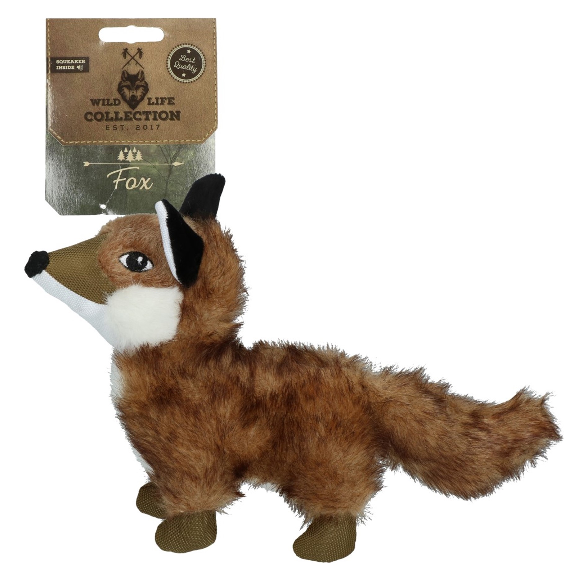 De Wild Life collection bestaat uit natuurgetrouwe pluche hondenspeeltjes. De vacht is gemaakt van zacht pluche en deze vos heeft een flostouw en een pieper.