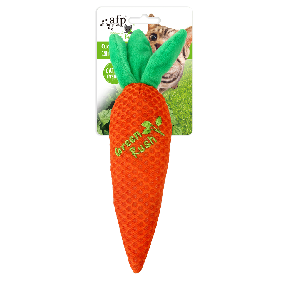 De leuke AFP Green Rush – Cuddler wordt het nieuwe favoriete speeltje van uw kat! Deze groentes zijn niet van echt te onderscheiden en bevatten bovendien Catnip, wat de leuke wortel of courgette echt onweerstaanbaar maakt. Door het leuke crinkle-geluid is het speelplezier compleet en kan uw kat zich uren met de AFP Green Rush – Cuddler vermaken!