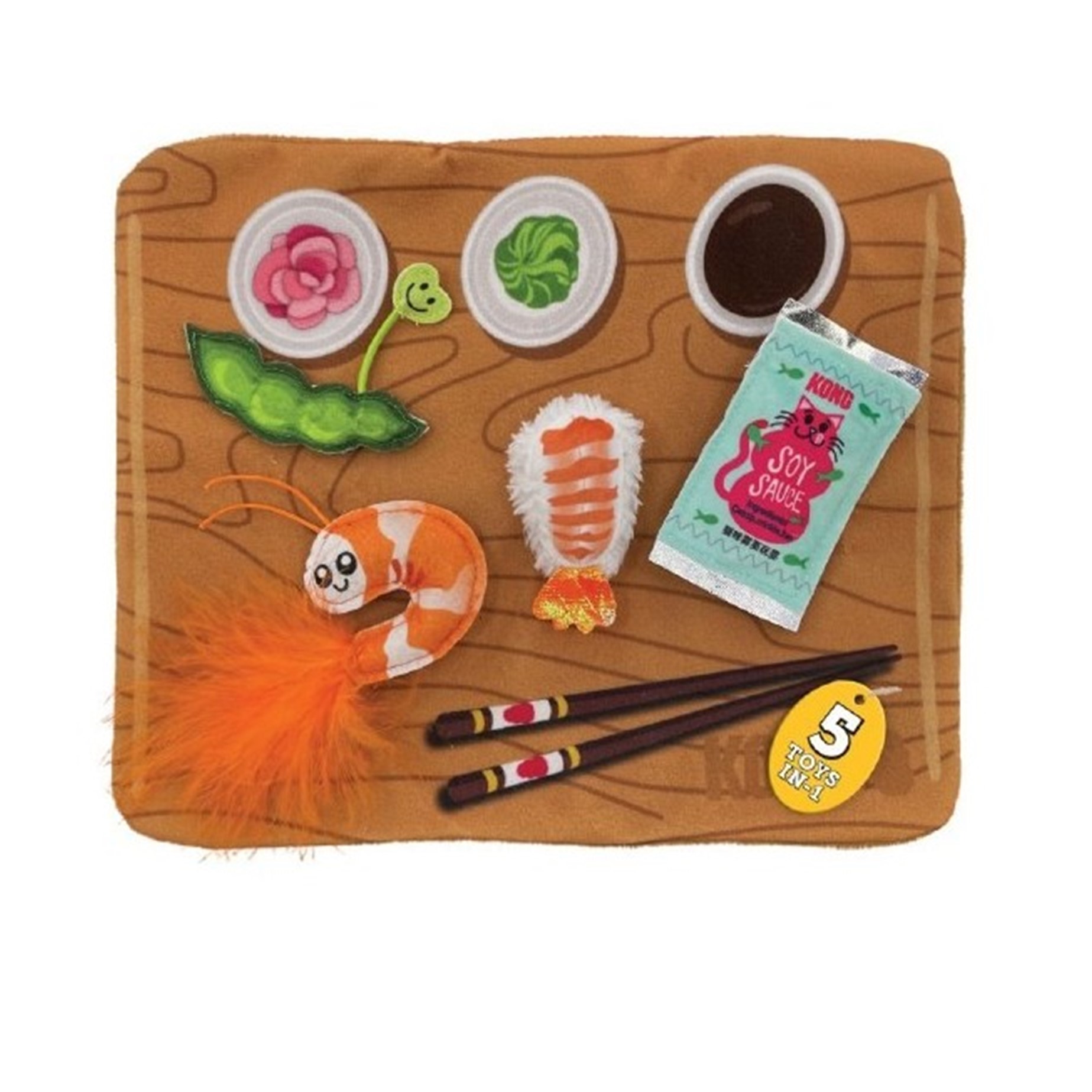 Deze superleuke plank is gevuld met knisperend materiaal en bevat 4 verschillende sushi speelgoedjes.