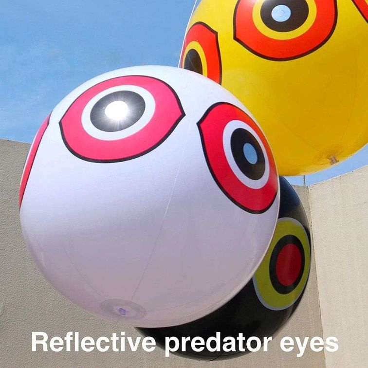 Vogels zien in de Bird scare eye opblaasballon de dreigende ogen van een roofdier. Ze herkennen er ook de opengesperde bek van een andere roofvogel in.