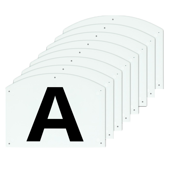 Deze letters worden opgehangen in de trainingsruimte van het paard en zorgen voor een juiste oriëntatie in de baan.