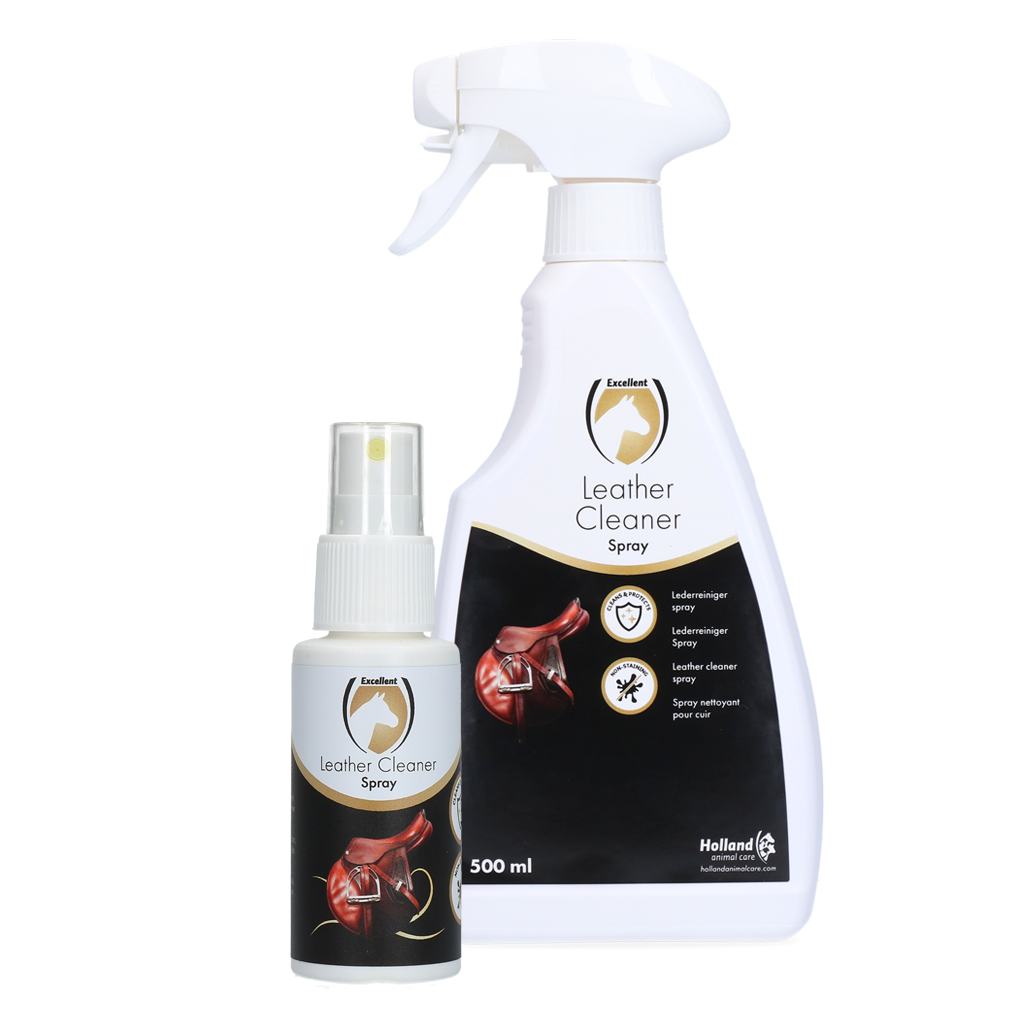 De Excellent Leather Cleaner Spray reinigt en verzorgt leder intensief en houdt het soepel en schoon, voor zadels, schoenen, laarzen, jassen etc.