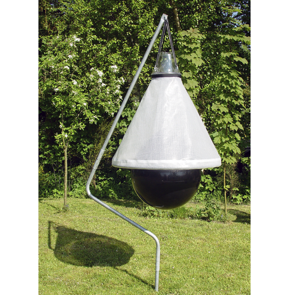 De dazenval vangt dazen door de vrouwtjesdazen te misleiden. De zwarte bal wordt verwarmd door de zon en beweegt lichtjes heen en weer in de wind.